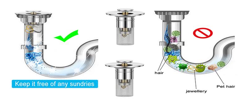 This Pop Up Sink Drain Filter is designed for your bathroom sink. It includes a removable stainless steel filter basket and a hair catcher. Perfect for replacing your bathroom sink stopper. Ideal for keeping your sink clean and free from hair and debris.